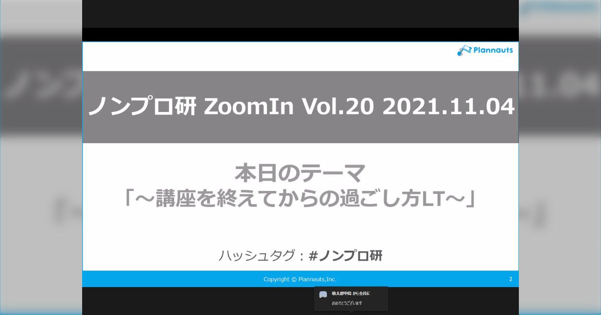 ノンプロ研の活動ではイベント・ZoomInの「講座を終えてからの過ごし方LT」に登壇しました。